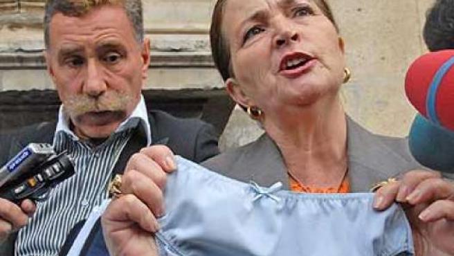 Alicia Hornos con las supuestas bragas que llevaba Rocío cuando murió y que alguien dejó en la puerta de su casa